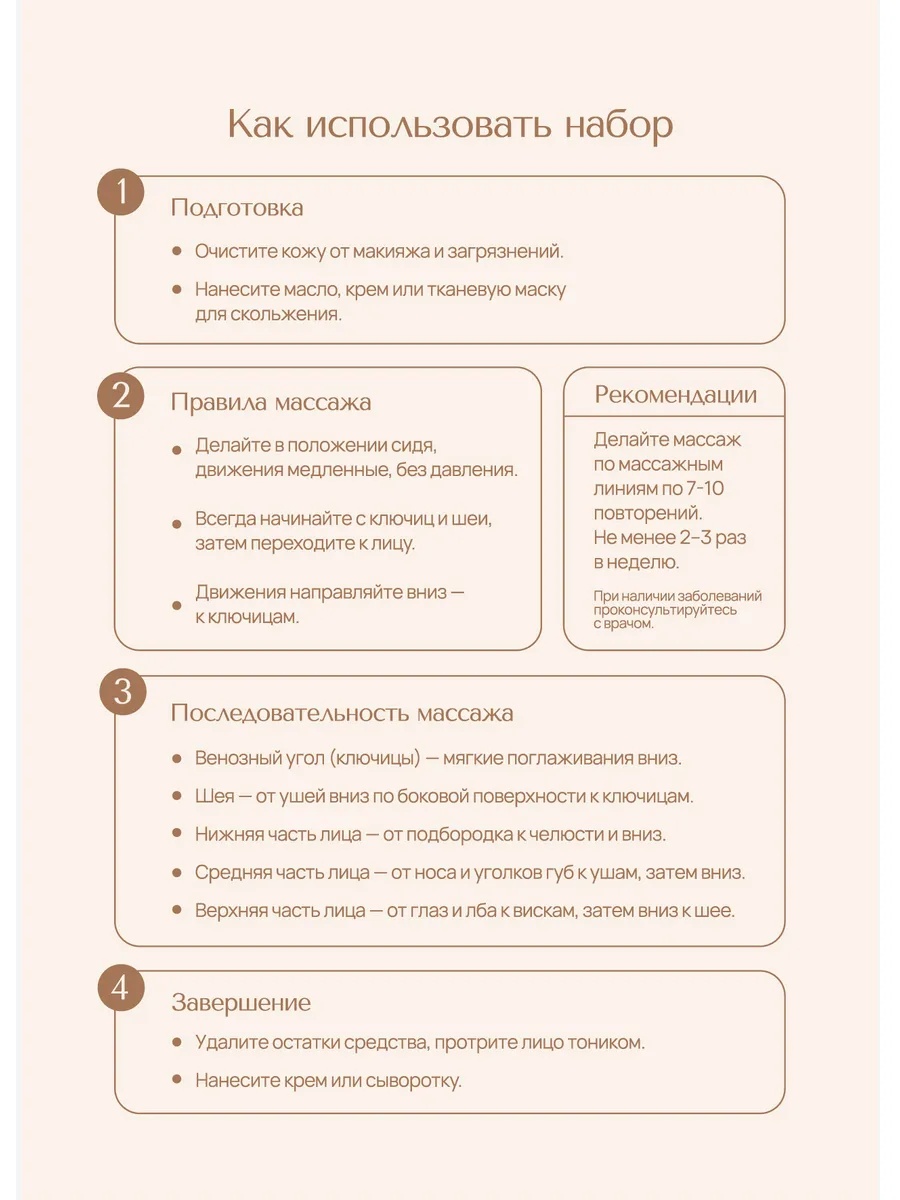 Каждый день ухода с этим набором превращается в SPA-процедуру. Массаж улучшает кровообращение и снимает отечность, придавая лицу свежесть и здоровье.