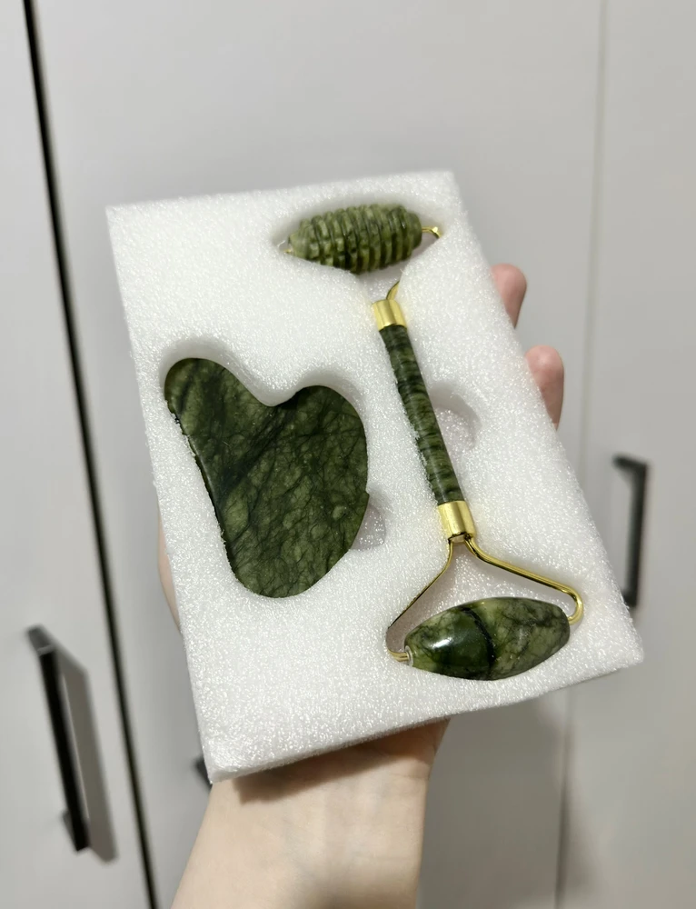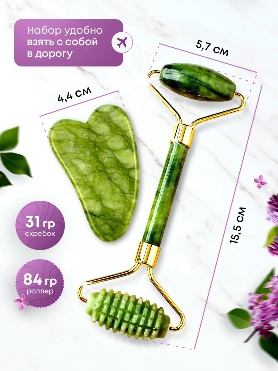 Набор Гуаша из натурального нефрита – ваш идеальный выбор для профессионального ухода за кожей в домашних условиях. Удобный роллер и скребок помогут вам расслабиться и улучшить состояние кожи.